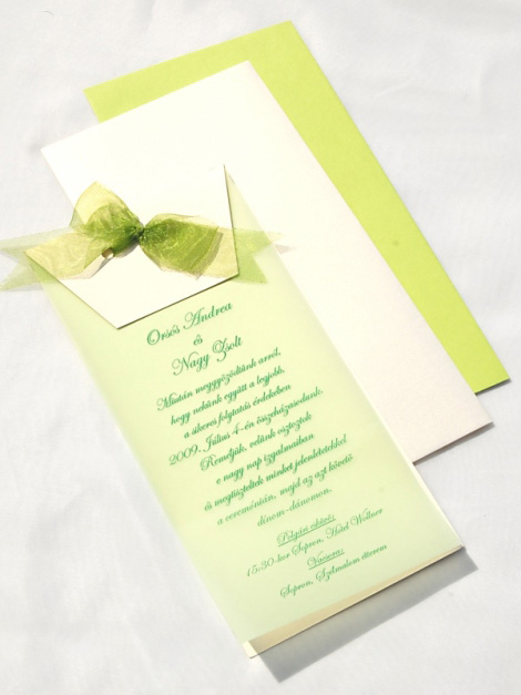 Ajánlott boríték: Curious metal LA/4 (110×220 mm) fehérarany, illetve világoszöld színben (A meghívó nem tartalmazza a boríték árát!)